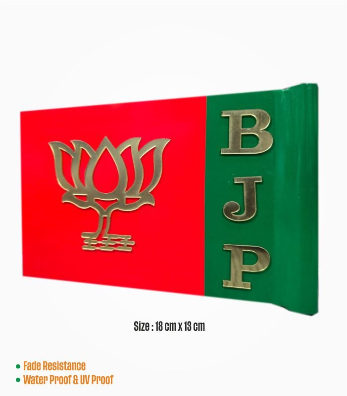 Show your political pride with our premium BJP car flag , designed for durability, visibility, and style. Crafted with a sturdy tin base, this flag features precisely cut acrylic letters that proudly spell “BJP” alongside the iconic lotus emblem.