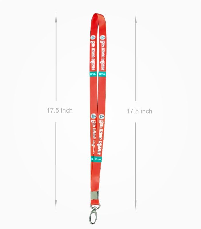 Premium BJP ID Card Holder Lanyard in orange digital print. Length 17.5 inch (folded) / approx. 35 inch (total) with metal hook attachment. Single & bulk quantity available.