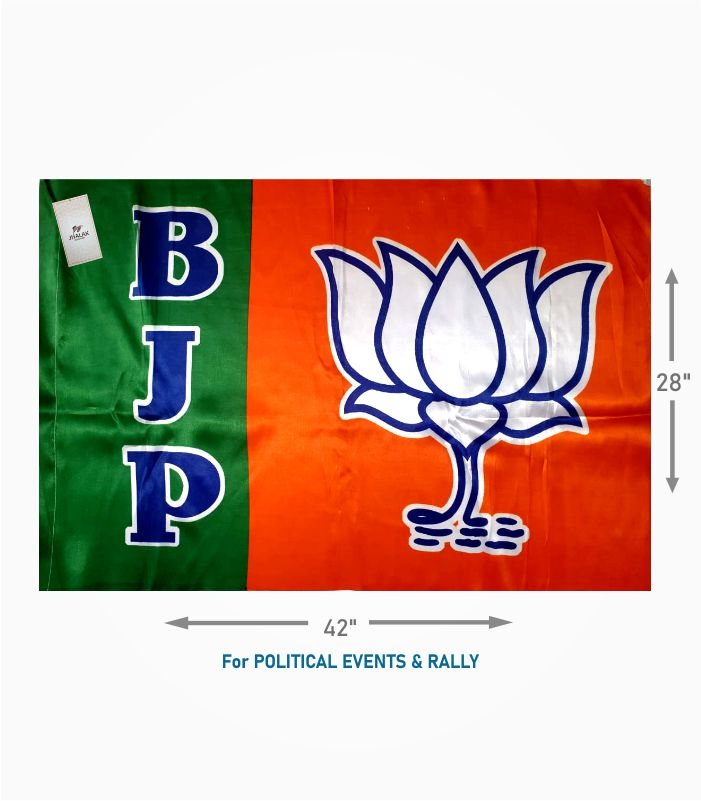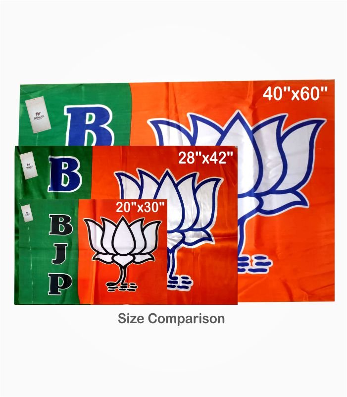 The BJP satin flag is available in three popular sizes. The compact 20×30 inch version is perfect for vehicles, street campaigning, or handheld use. In comparison, the 28×42 inch size fits well on balconies, walls, and smaller stage backdrops. For maximum visibility, the 40×60 inch flag makes an impressive statement at large campaign grounds or media setups.