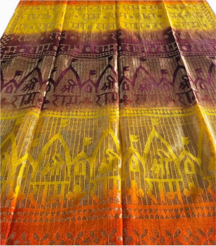 Jai Shri Ram dupatta is a devotional and ceremonial cloth commonly used for religious events, welcome ceremonies, and stage felicitation. This multicolour chunri dupatta features a clear and attractive “Jai Shri Ram” print, giving it a strong visual presence for both cultural and public occasions.